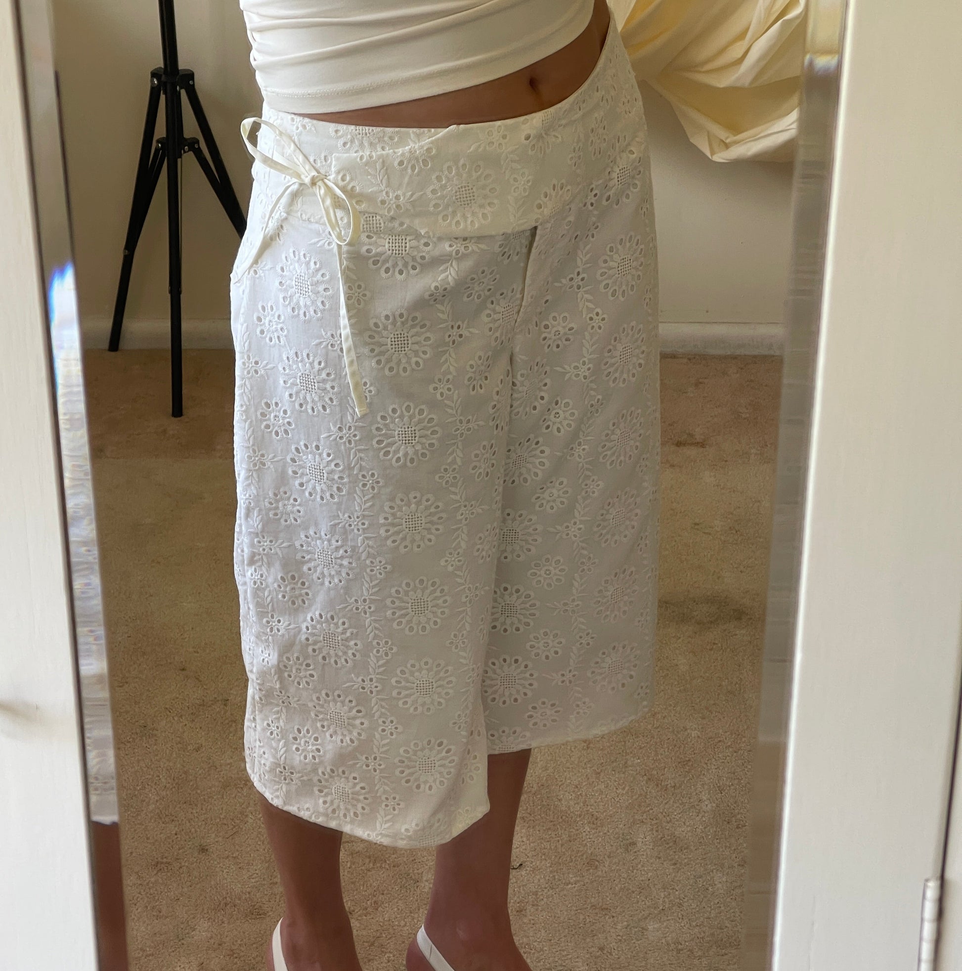 These embroidered cotton capris are the statement piece to have in your wardrobe this summer. Featuring our signature sculptural tie detail at the waist, they’re designed to sit mid-to-low rise with a relaxed, slightly oversized fit. Available lined or unlined, depending on how you like to wear them. Pair them with the Sofia Cami for an effortlessly cool look.